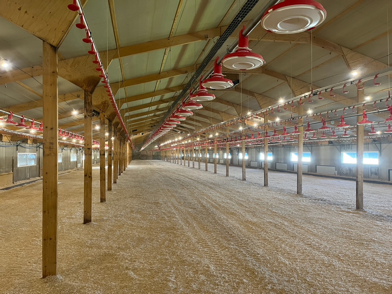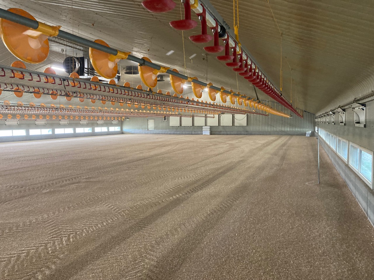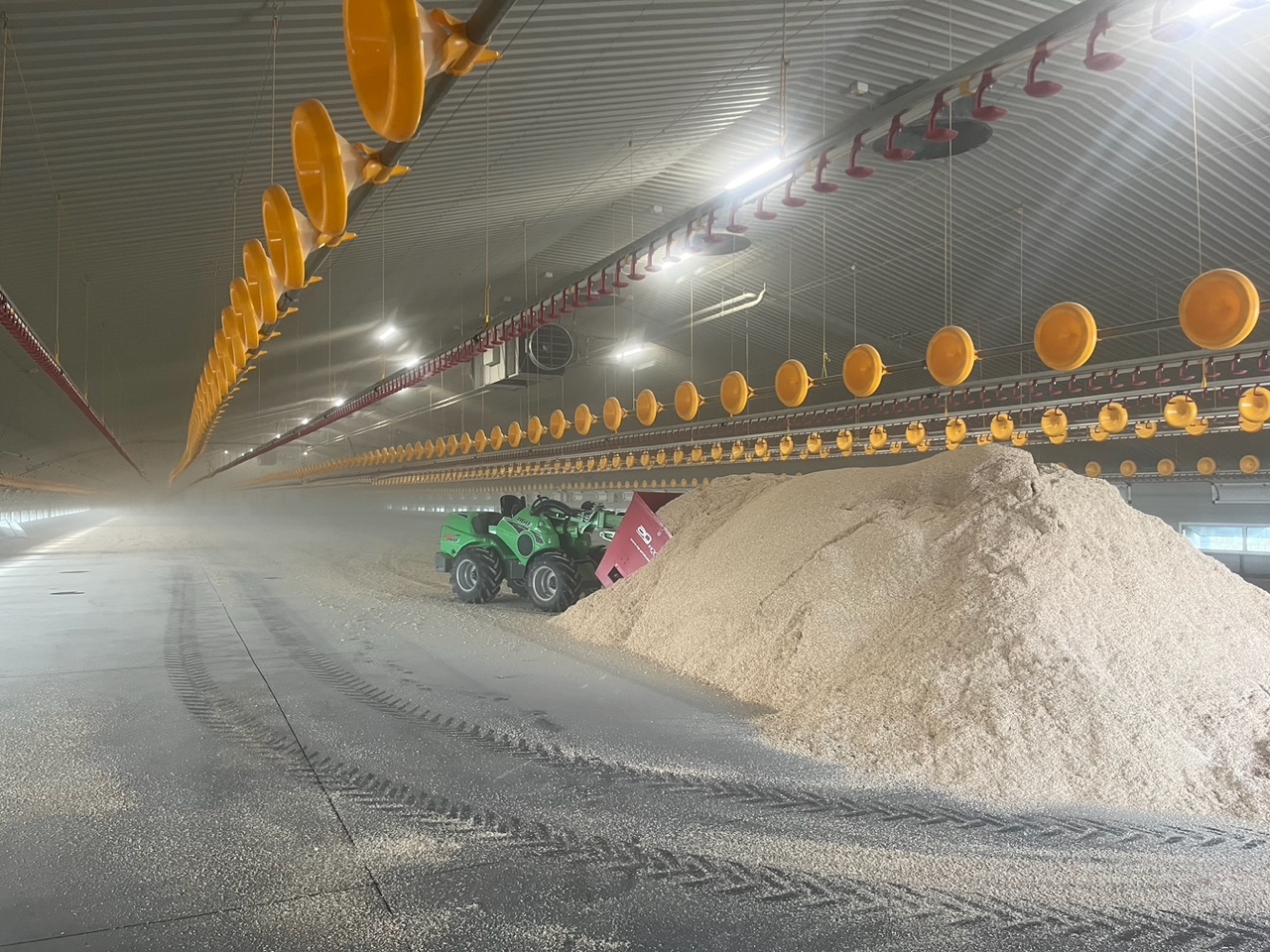 After disinfection we can assist in the spreading of shavings in broiler sheds using an AG FS200 spreader.